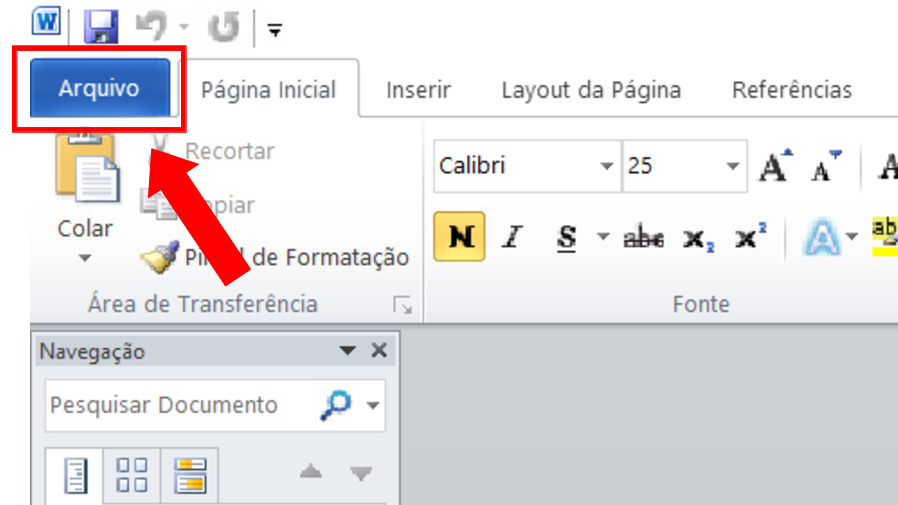 Observações: Para esta orientação foi utilizado o Microsoft Word 2010. Você pode salvar documentos em PDF/A pelo World à partir da versão 2007.