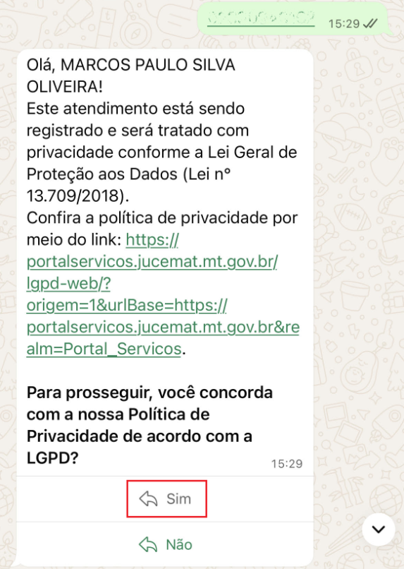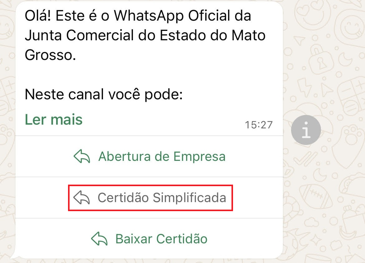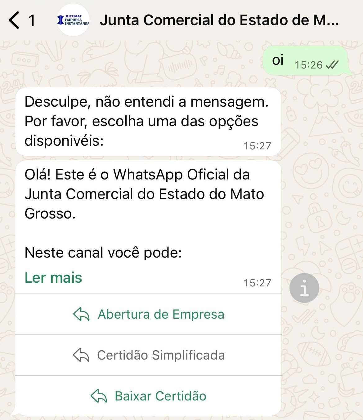 Passo 11 - Aguarde a JUCEMAT lhe enviar a certidão pelo WhatsApp.