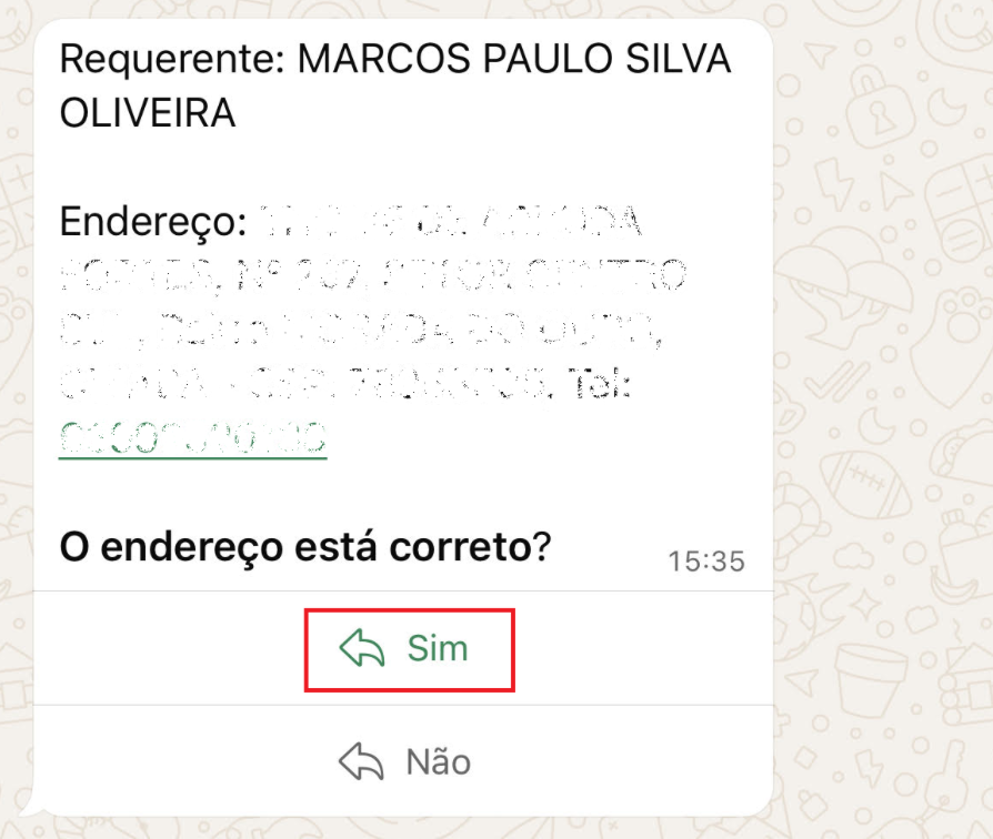 Passo 8 - Confira o nome e endereço apresentados. Clique em Sim para prosseguir.